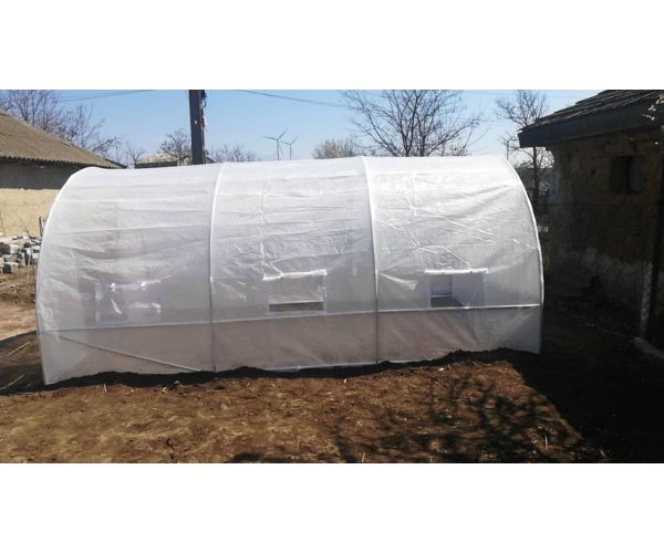 Acest solar pe structura de metal este perfect pentru cei ce isi doresc o solutie ieftina si rezistenta la actiunea factorilor de mediu. Constructia a fost realizata din tuburi de metal cu diametrul de 25 mm si pereti de 0.8 mm. Tuburile au fost galvanizate la interior si la exterior pentru rezistenta la coroziune. Fiecare element va fi prins cu suruburi, incluse in pachet. Un film special a fost aplicat pe suprafata copertinei, pentru a proteja impotriva radiatiilor UV daunatoare dar care permit trecerea unei cantitati optime de lumina solara, pentru dezvoltarea armonioasa a plantelor. De asemenea acest film protejeaza impotriva uzurii mecanice. Insertiile de culoare inchisa, au rolul de a atrage lumina solara, mai bine decat o face folia transparenta obisnuita. Avand 4.5 m lungime, 3 m latime si 2 m in inaltime (o persoana adulta poate sta cu usurinta in picioare inauntru), ofera un spatiu total de cultivare de 13.5 mp. In interiorul solarului este garantata dezvoltarea armonioasa a plantelor, chiar daca conditiile atmosferice nu sunt favorabile. Constructia este realizata din 3 module de cate 1.5 m lungime. Partile individuale sunt prevazute cu manere si cate 3 ferestre laterale functionale, pe fiecare parte. Usa se inchide cu o incuietoare dubla care permite inchiderea solarului atat din exterior cat si din interior. Usa poate de asemenea sa fie rulata si prinsa cu velcro.